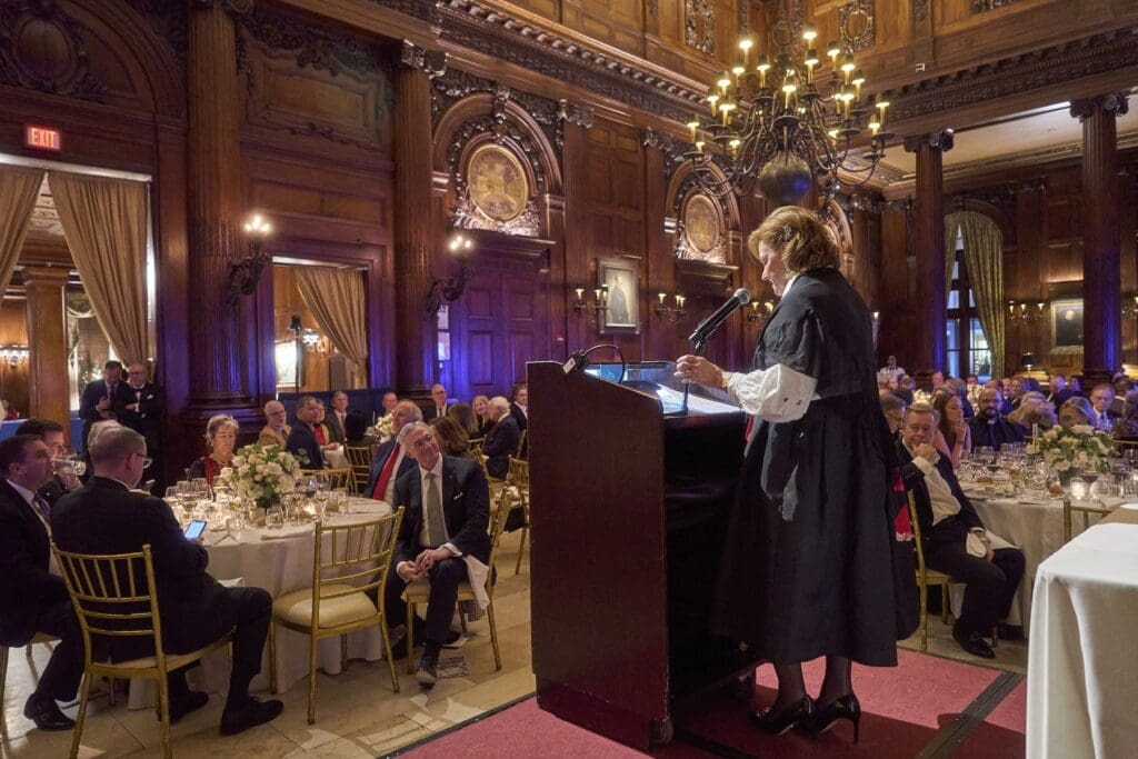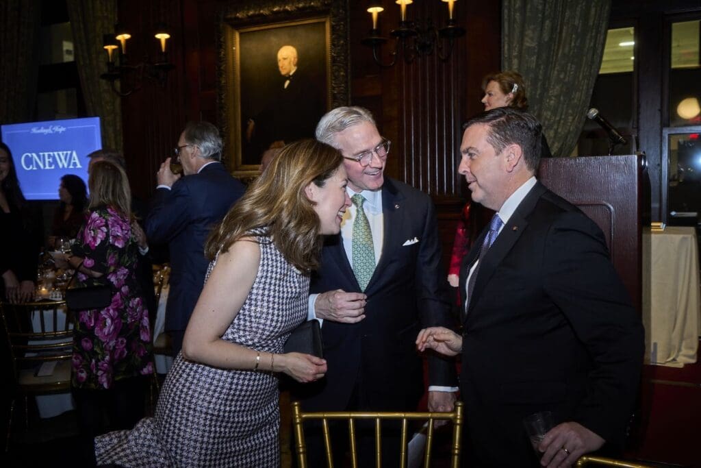 The evening included a special virtual appearance from Msgr. Peter I. Vaccari, president of CNEWA, who spoke from Lebanon, where he had traveled with Pope Leo XIV, during his three-day pastoral visit, since CNEWA-Pontifical Mission supports programs in the region. Msgr. Vaccari thanked all those in attendance and noted the evening was launching “our centennial year celebration, a key moment for us as we go forward in mission; a key moment as we expand the work we do in the places where we go; and a key moment as we try now to give greater support to those who are so desperately, desperately in need.”