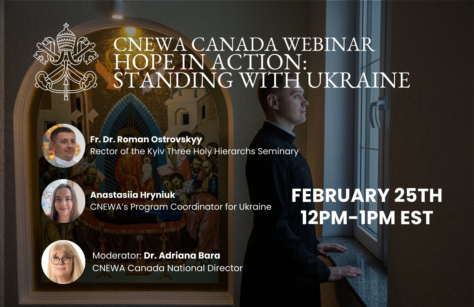 We will also hear from Anastasiia Hryniuk, CNEWA’s Ukraine Program Coordinator, who will provide important insights and updates on CNEWA’s current programs, the urgent needs on the ground, and how your support is making a direct impact.
