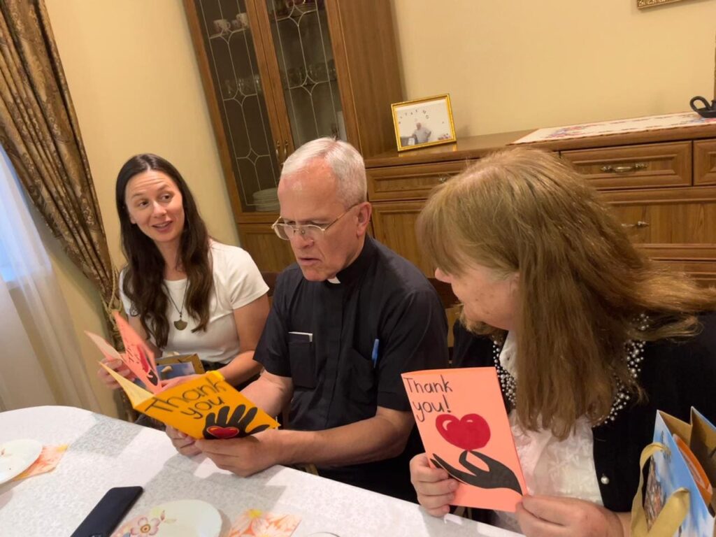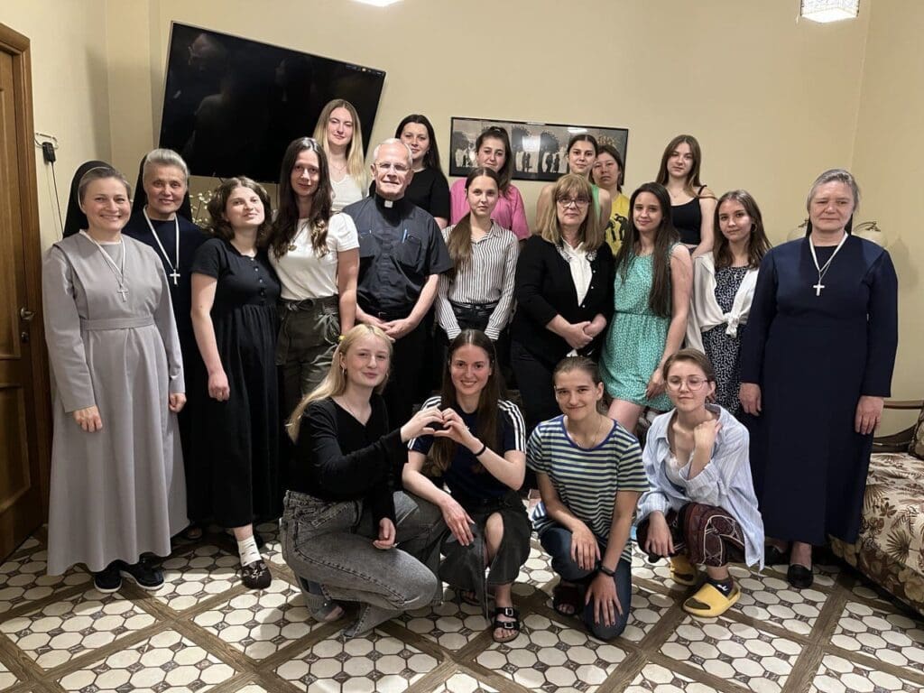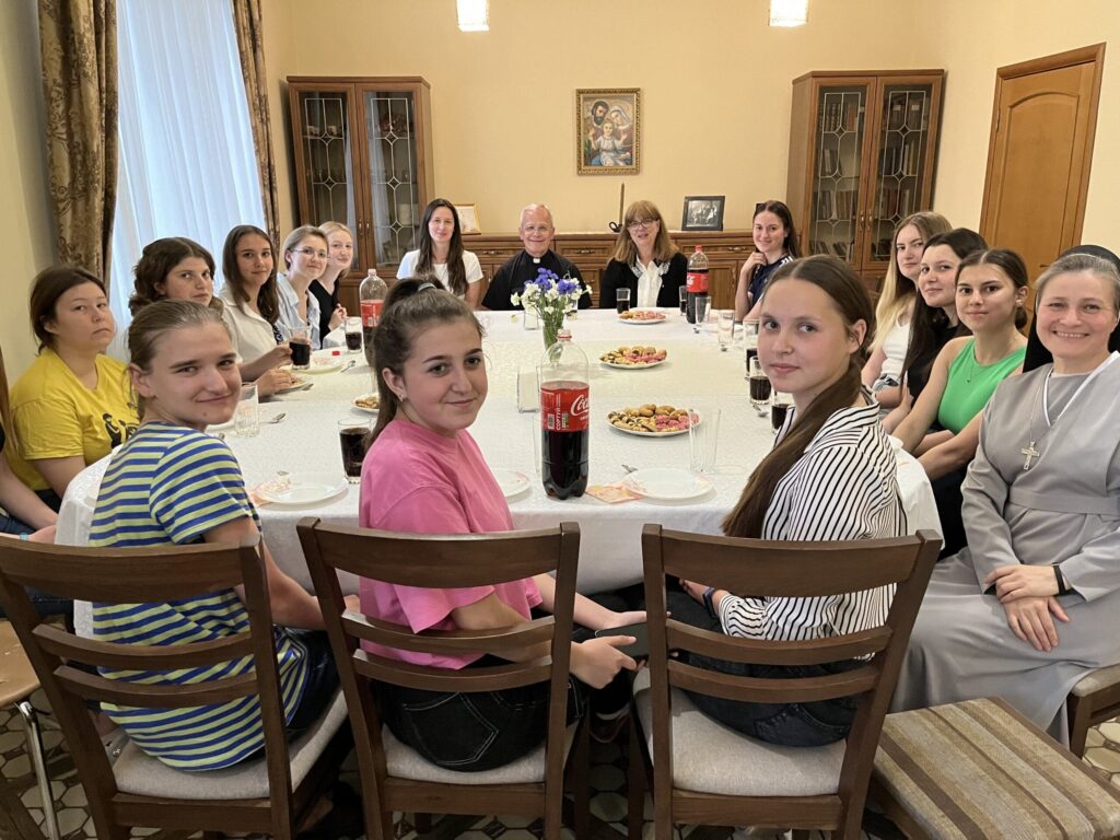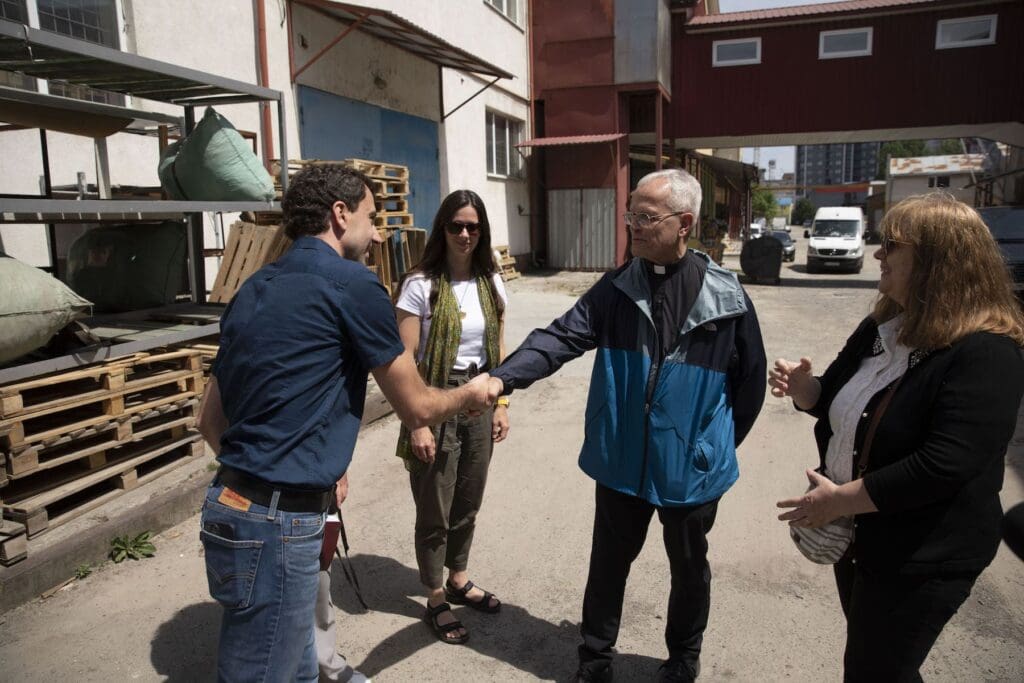 Las visitas del martes llevaron al equipo a un centro de paquetes de alimentos en Novoyavorivsk, donde se reunieron con voluntarios y observaron el proceso de empaque de cajas para su distribución, y un centro para personas desplazadas. Más tarde, visitaron a las Hermanas Siervas de María Inmaculada y su Casa de Esperanza, que ofrece atención a niñas y jóvenes necesitadas.