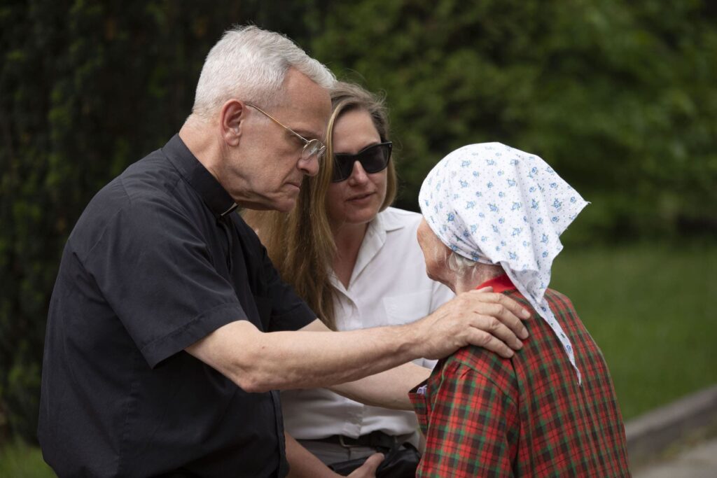 Monseñor Peter I. Vaccari, presidente de CNEWA, Adriana Bara, directora nacional en Canadá, y Anna Dombrovska, oficial de programas, visitaron programas patrocinados por la agencia en Lviv en una visita pastoral a Ucrania del 3 al 7 de junio. Al llegar a Rzeszow (Polonia), el equipo viajó a Lviv y se dirigió a la Universidad Católica Ucraniana, donde estuvieron alojados durante su visita y protegidos durante las alarmas de ataque aéreo.