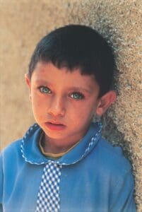 Los niños son los más afectados por las crisis, naturales y provocadas por el hombre, que afectan a todas las regiones donde CNEWA presta sus servicios. Christian Molidor era un fotoperiodista profesional y Hermana Religiosa de la Misericordia, quien ingresó a esa comunidad en Illinois en 1959. Se unió al equipo de CNEWA en 1984 y, durante más de 27 años, recorrió el mundo de CNEWA con su cámara, capturando momentos extraordinarios a través de algunos momentos difíciles, como la hambruna y la guerra en el Cuerno de África, la guerra civil en el Líbano y los desastres naturales en la India. Su imagen de una niña riendo, tomada durante una asignación a Eritrea y Etiopía en 2000, es una clásica de la hermana Christian, que revela la felicidad pura en la niña y la alegría interior de la propia artista.