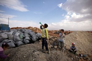 Al principio, los niños refugiados tenían poco que hacer; interrumpida su escolarización, jugaron con los escombros de los materiales utilizados para construir instalaciones temporales, como tiendas de campaña, que fueron fotografiadas por Tamara Hadi a finales de 2013. Las Hermanas del Buen Pastor, con el apoyo de los benefactores de CNEWA, respondieron, abriendo una escuela para los niños y ayudando a restaurar una apariencia de normalidad en sus jóvenes vidas.